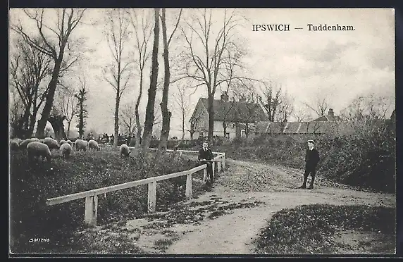 AK Ipswich, Tuddenham, Sheep on the Roadside