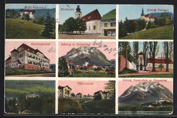 AK Irdning, Ortspartie mit Grimming, Villenviertel, Bezirksgericht