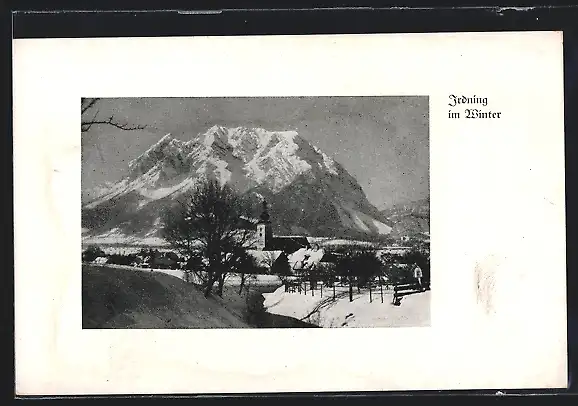 AK Irdning, Ortspartie mit Kirche im Winter