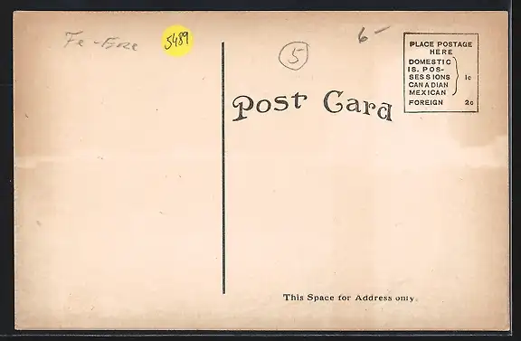 Personenbezogene Daten auf der Rückseite der Karte wurden durch blauen Textmarker unkenntlich gemacht. Die blauen Stellen sind auf die Vorderseite durchgeweicht und wirken sich negativ auf das Postkartenfoto aus