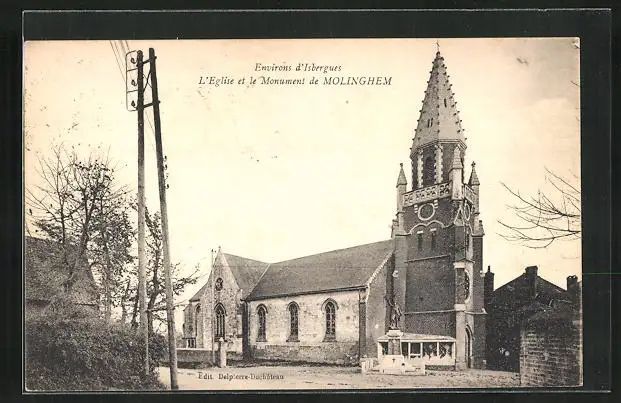 AK Isbergues, L`Eglise et le Monument de Molinghem