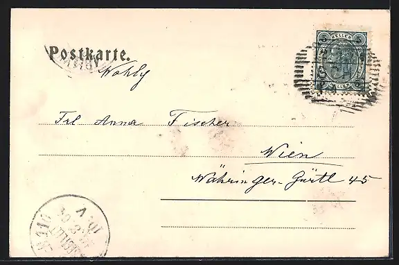 alte Ansichtskarte, gelaufen 1904, Stempelspur, guter Zustand
