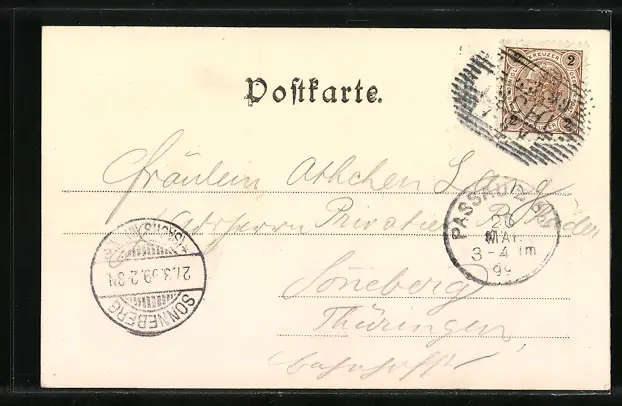 alte Ansichtskarte, gelaufen 1899, guter Zustand