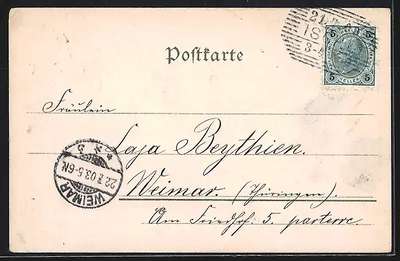 alte Ansichtskarte, gelaufen 1903, guter Zustand