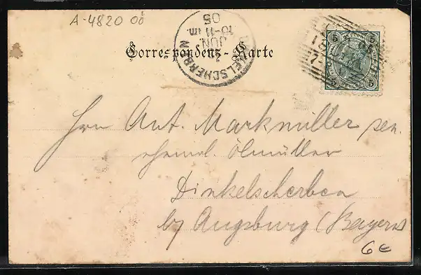 gelaufen 1905, Eckknick li. oben, guter Zustand
