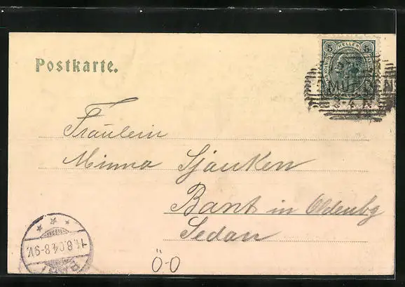alte Ansichtskarte, gelaufen 1904, Eckknicke li. unten, Stempelspur, guter Zustand