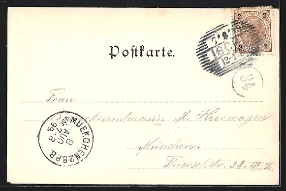 alte Ansichtskarte, gelaufen 1899, guter Zustand