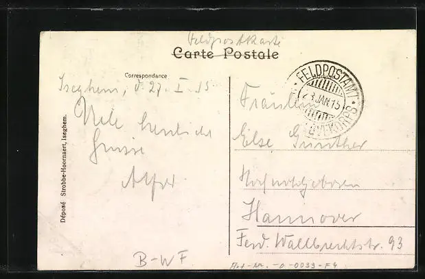 alte Ansichtskarte, gelaufen 1915 als Feldpost, Eckknick re. unten, sonst guter Zustand