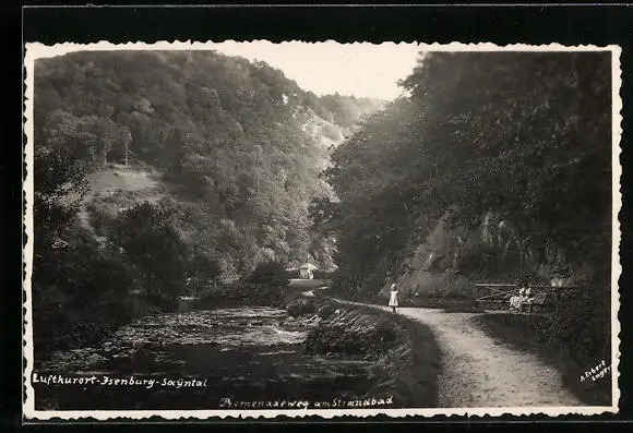 AK Isenburg /Sayntal, Promenadenweg am Strandbad