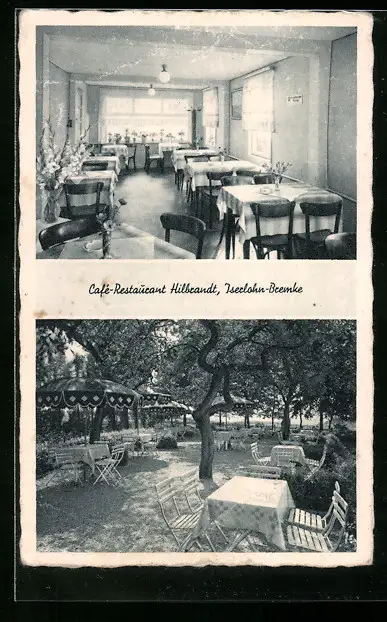 AK Iserlohn-Bremke, Cafe-Restaurant Hilbrandt, Innenansicht, Gartenblick