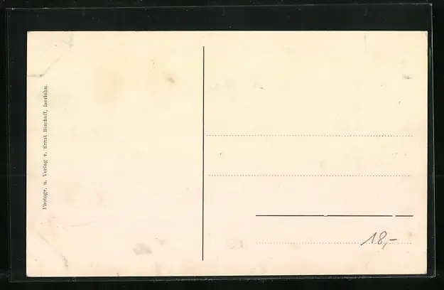 Personenbezogene Daten auf der Rückseite der Karte wurden durch blauen Textmarker unkenntlich gemacht. Die blauen Stellen sind auf die Vorderseite durchgeweicht und wirken sich negativ auf das Postkartenfoto aus