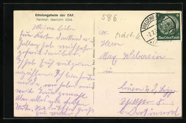 alte Ansichtskarte, gelaufen 1938, guter Zustand