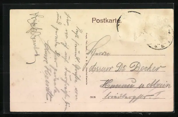 alte Ansichtskarte, gelaufen, Briefmarke entfernt, rückseitig Oberflächenschaden, guter Zustand