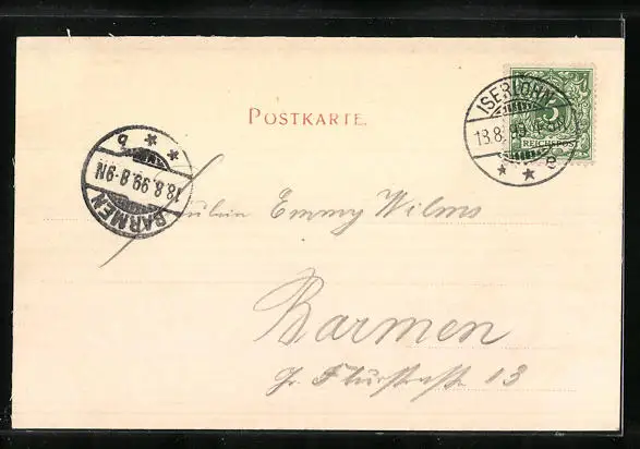 alte Ansichtskarte, gelaufen 1899, Stempelspur, guter Zustand