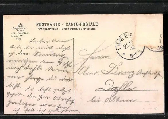alte Ansichtskarte, gelaufen, Briefmarke entfernt, guter Zustand