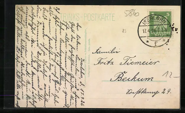 alte Ansichtskarte, gelaufen 1926, guter Zustand