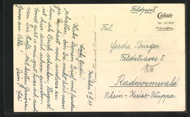 ungelaufen, Rückseite beschrieben 1941, guter Zustand