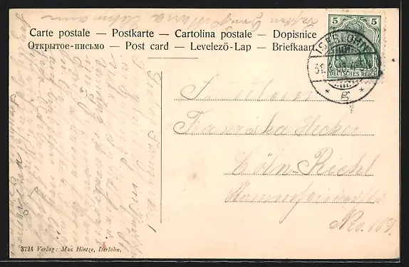 alte Ansichtskarte, gelaufen 1908, Stempelspur, guter Zustand