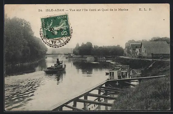 AK Isle-Adam, Vue sur l`Ile Conti et quai de la Marine