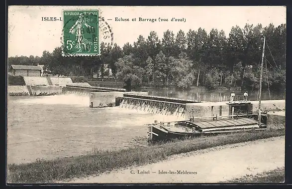 AK Isles-lès-Meldeuses, Écluse et barrage (vue d`aval)