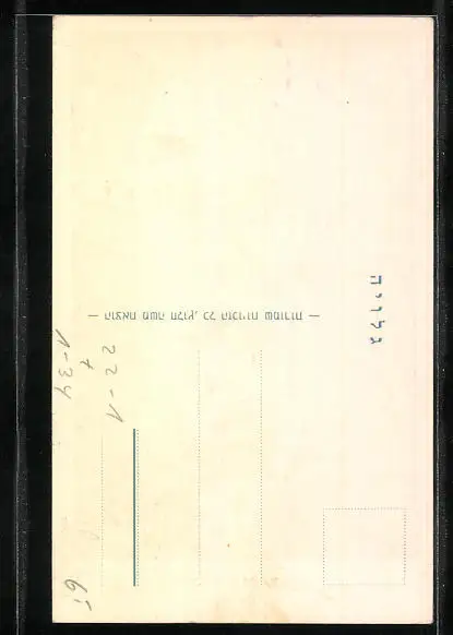 Personenbezogene Daten auf der Rückseite der Karte wurden durch blauen Textmarker unkenntlich gemacht. Die blauen Stellen sind auf die Vorderseite durchgeweicht und wirken sich negativ auf das Postkartenfoto aus