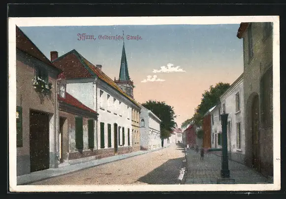AK Issum, Geldernsche Strasse mit Kirchturm