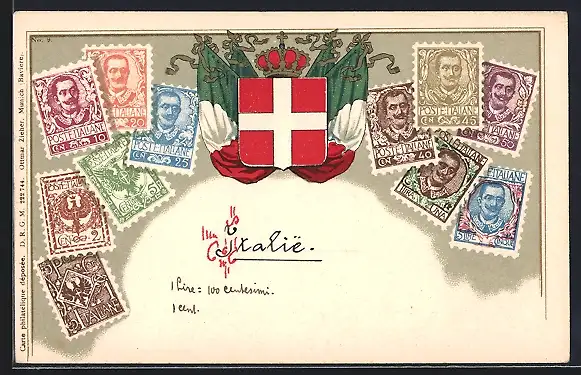 AK Italien, Briefmarken mit Wappen