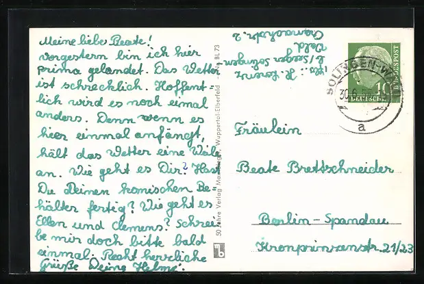 alte Ansichtskarte, gelaufen 1955, guter Zustand