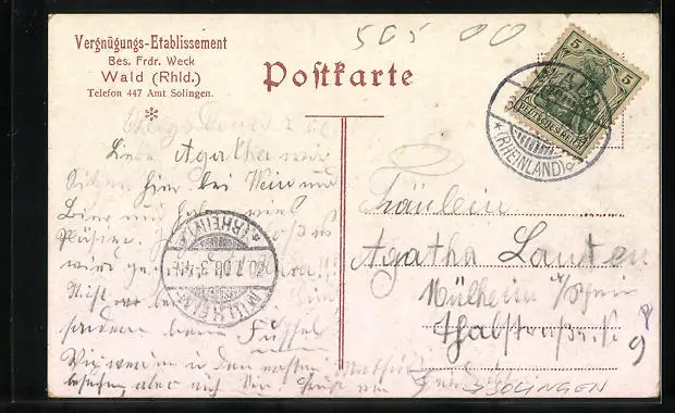 alte Ansichtskarte, gelaufen 1906, guter Zustand