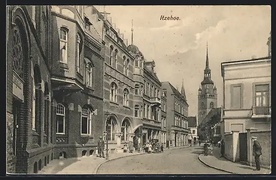 AK Itzehoe, Blick durch die belebte Strasse
