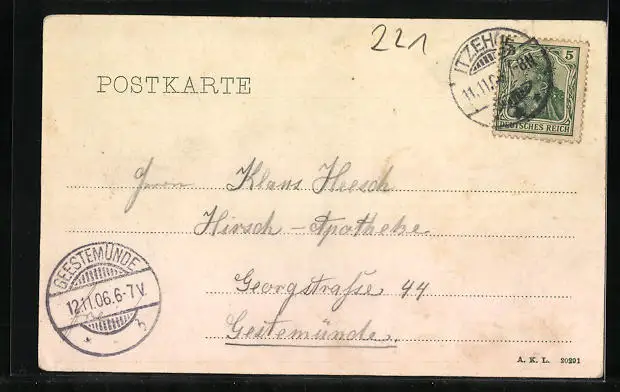 alte Ansichtskarte, gelaufen 1906, guter Zustand