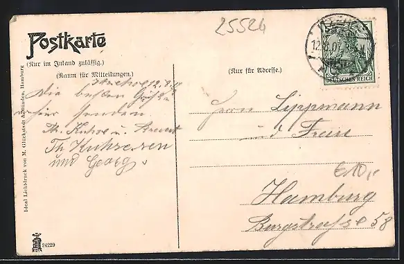 alte Ansichtskarte, gelaufen 1907, Eckknick oben re., guter Zustand