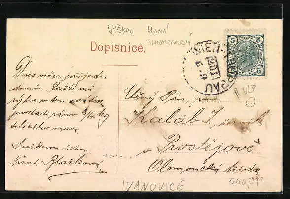 AK Ivanovice, Námestí, Celkový pohled, Radnice, Socha sv. Floriana, Besedni dum
