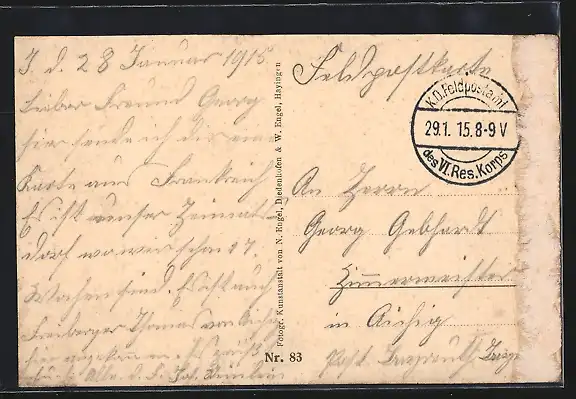gelaufen 1915, rückseitig Klebe- und Papierreste, Eckknick li. unten, guter Zustand