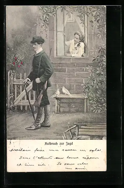 AK Jäger mit Gewehr beim Aufbruch zur Jagd