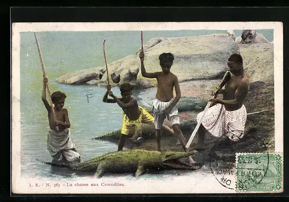 AK Jäger mit Waffen auf Krokodil-Jagd