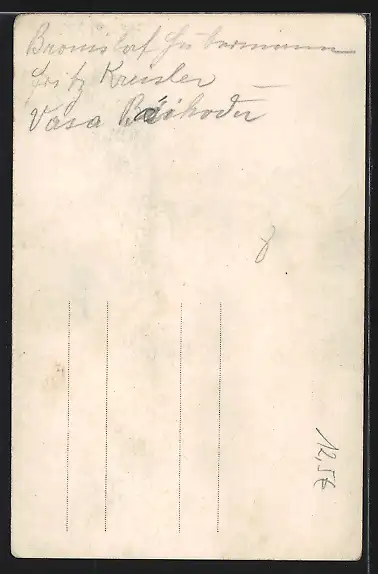 Personenbezogene Daten auf der Rückseite der Karte wurden durch blauen Textmarker unkenntlich gemacht. Die blauen Stellen sind auf die Vorderseite durchgeweicht und wirken sich negativ auf das Postkartenfoto aus