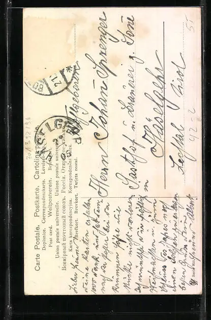 alte Ansichtskarte, gelaufen, Briefmarke entfernt, rückseitig Klebe- und Papierreste, rückseitig Oberflächenschaden, guter Zustand