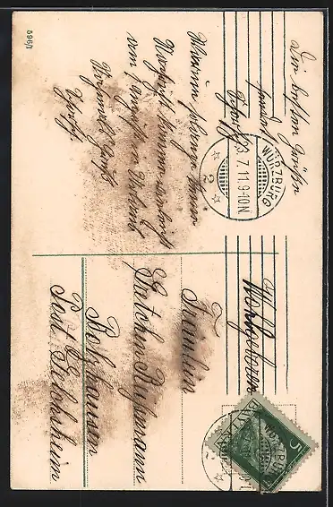 alte Ansichtskarte, gelaufen 1911, Stempelspur, guter Zustand