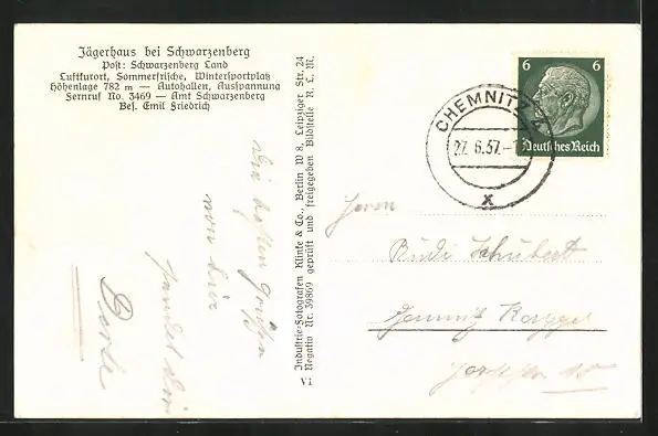 AK Jägerhaus / Schwarzenberg, Gesamtansicht