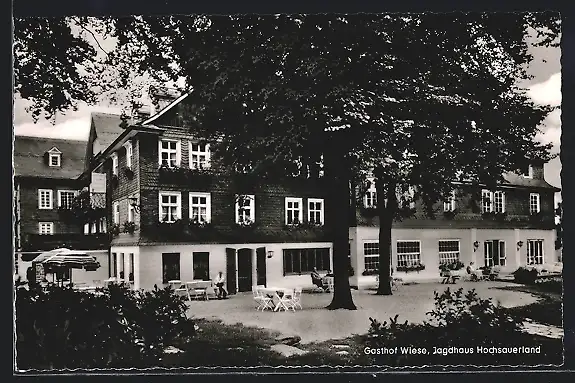 AK Jagdhaus /Hochsauerland, Gasthof Wiese mit Gästen