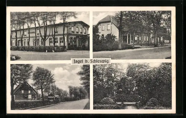 AK Jagel bei Schleswig, Gasthaus, Strassenpartie, Denkmal