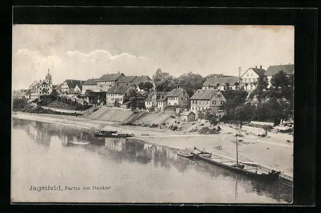 AK Jagstfeld, Blick auf die Häuser am Neckarufer