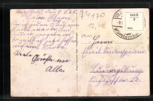 alte Ansichtskarte, gelaufen 1925, Briefmarke entfernt, Eckknick li. oben, guter Zustand