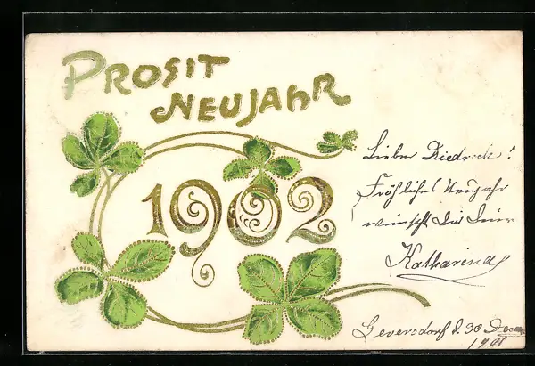 AK Jahreszahl 1902 mit Kleeblättern, Prosit Neujahr