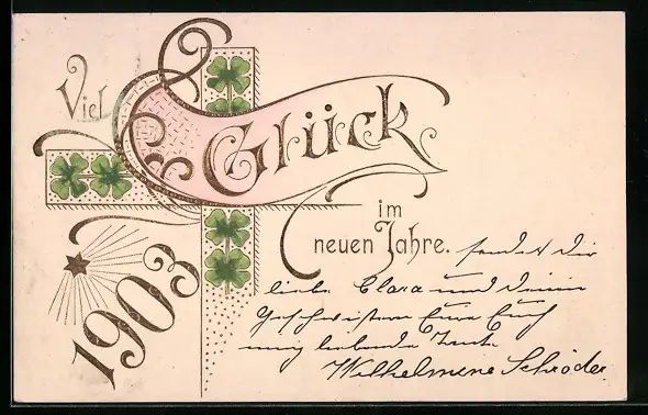 AK Jahreszahl 1903, Neujahr, Kleeblätter