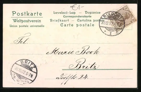 alte Ansichtskarte, gelaufen 1902, guter Zustand