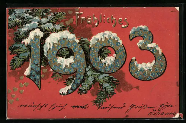 AK Jahreszahl 1903 und Tannenzweig mit Schnee bedeckt