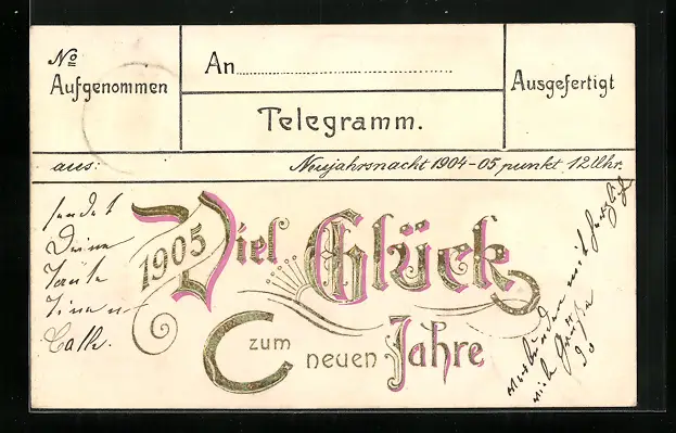 AK Jahreszahl 1905, Telegramm, Hufeisen