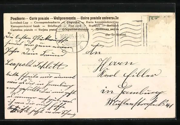 alte Ansichtskarte, gelaufen, Briefmarke entfernt, guter Zustand